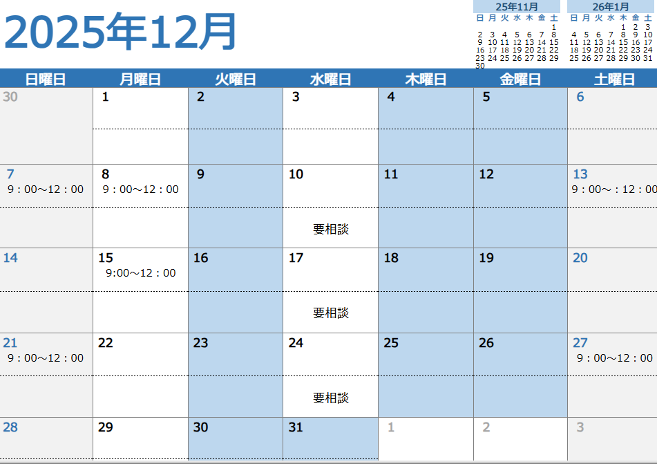 12月レッスンスケジュール